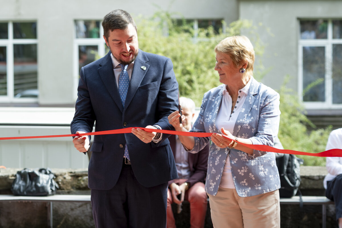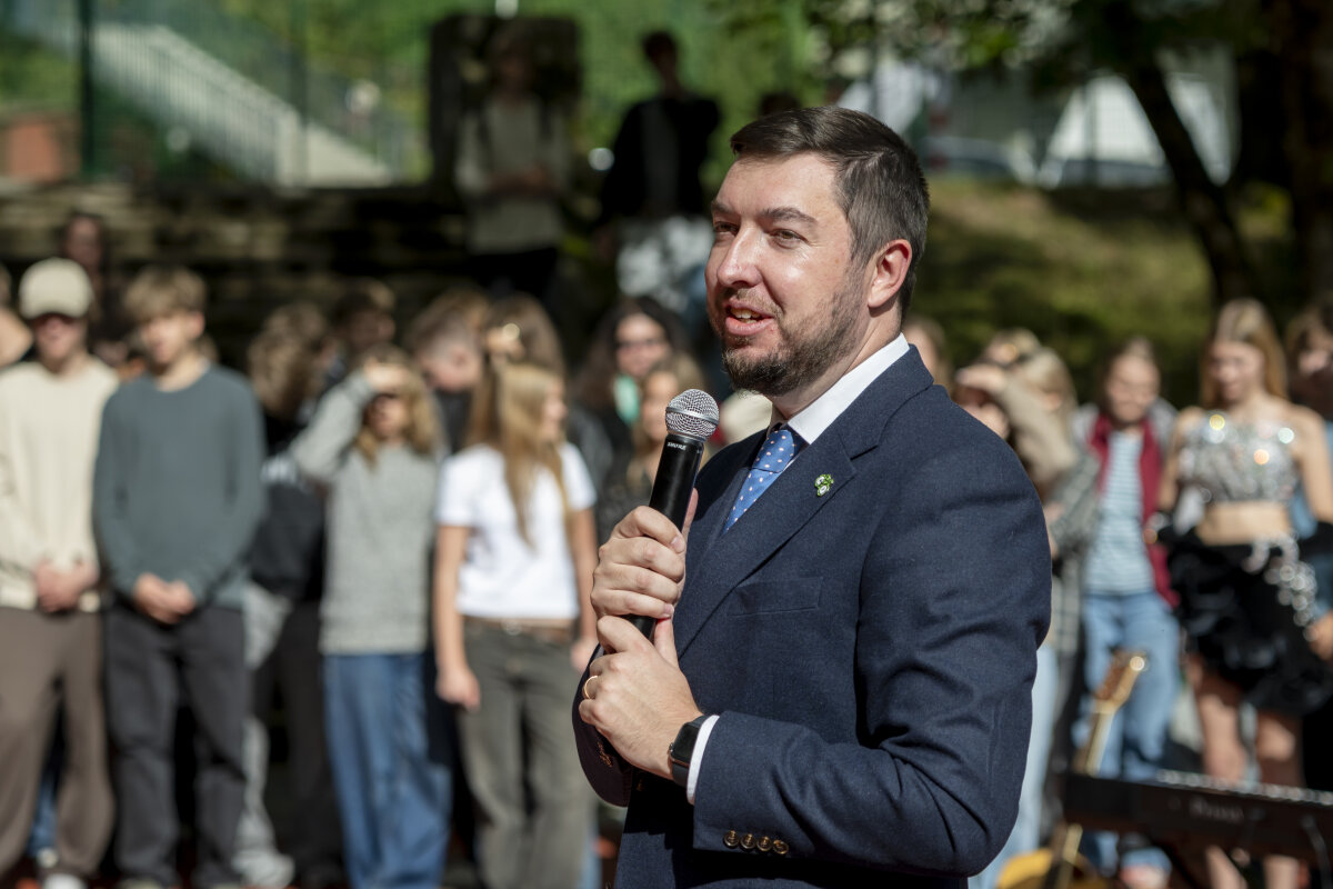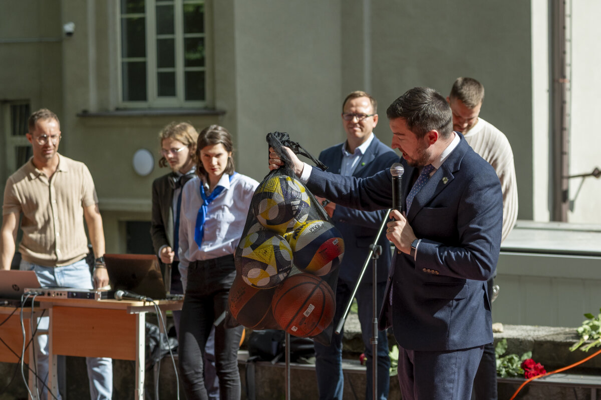 Ketvirtadienį, rugsėjo 18 d., gimnazijoje vyko ypatingas šventinis renginys, subūręs mokyklos bendruomenę ir svečius – lankėsi Vilniaus miesto vicemeras Vytautas Mitalas su savivaldybės komanda. Vizito tikslas – kartu su bendruomene pasidžiaugti naujai įrengtomis sporto erdvėmis, skirtomis tiek mokiniams, tiek visam Užupiui.