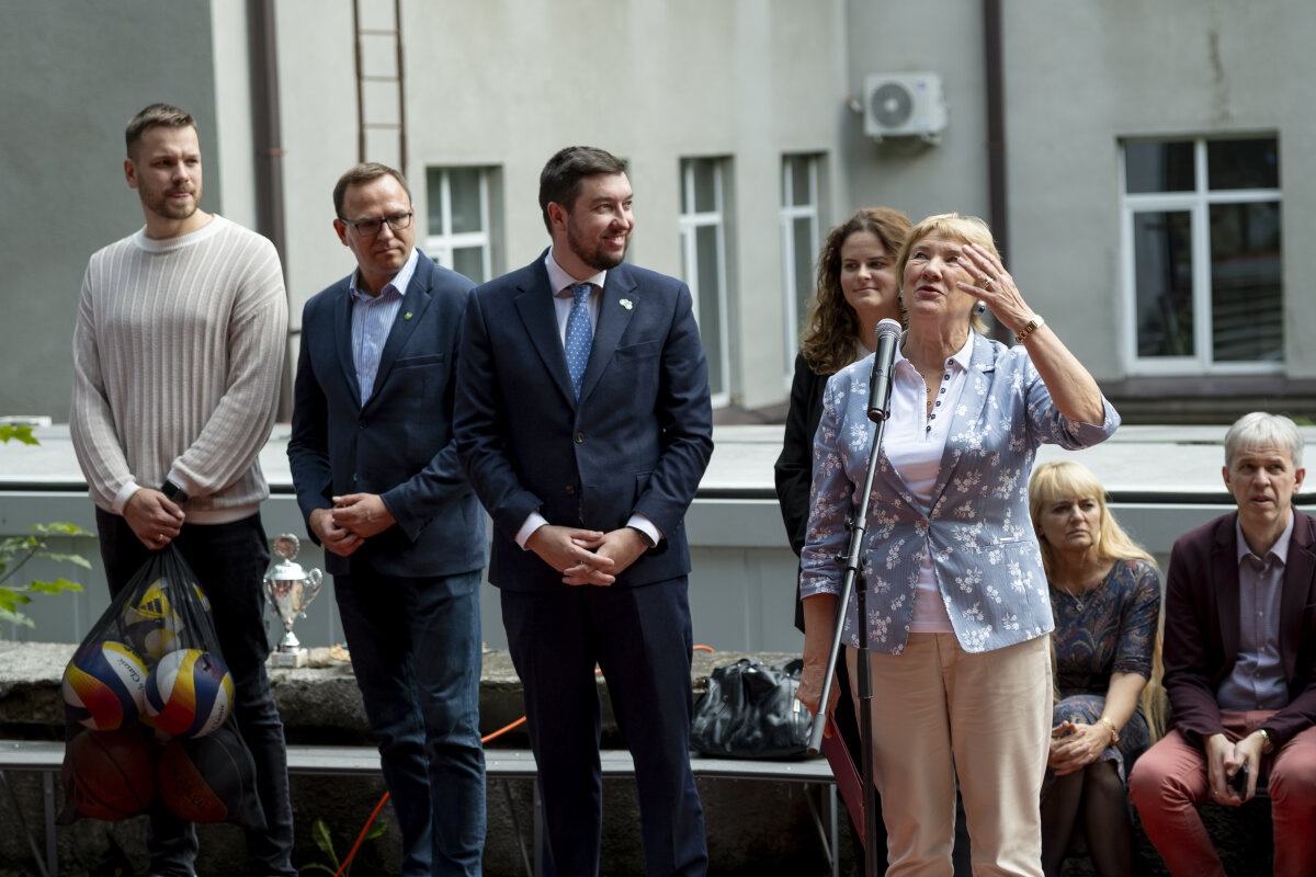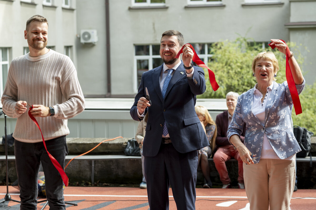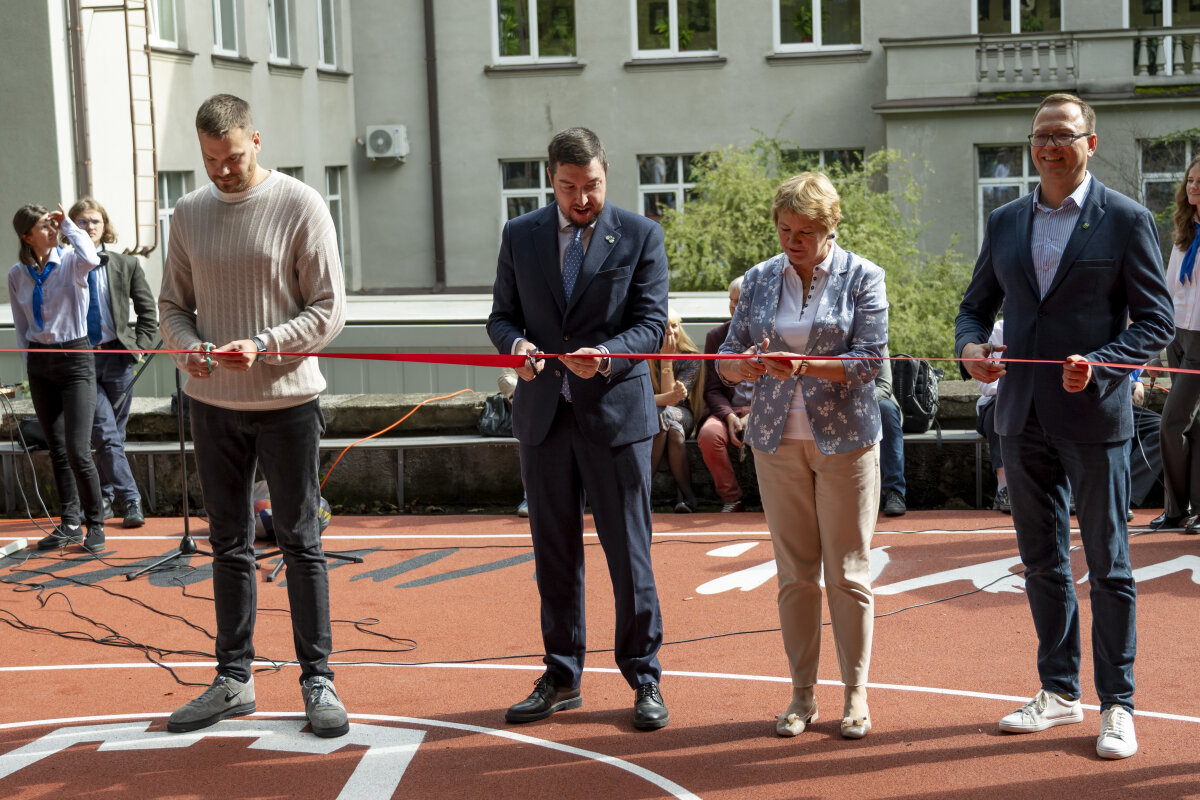 Naujos sporto erdvės prie gimnazijos – šventė, svečiai ir pirmosios varžybos gimnazijos kieme